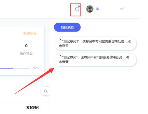 4、当有成员在项目意见中@您或者有成员文件上传后,右上角将会显示通知
