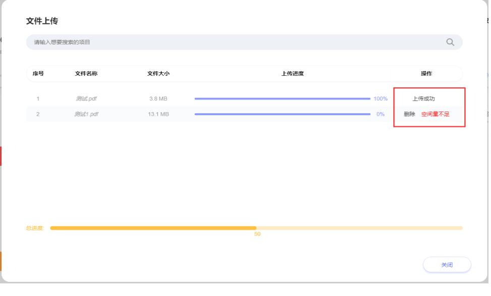 3、选好后点击立即上传即可(上传之后如果空间的剩余容量不够会提示空间不足)