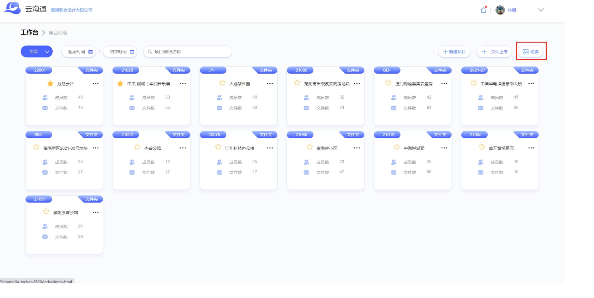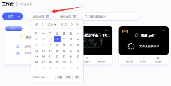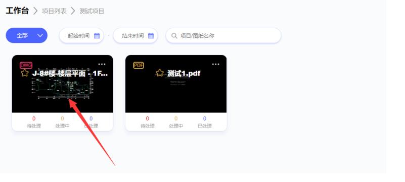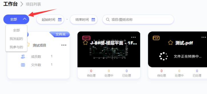 4、左上角可以对现有的项目以及文件图纸进行筛选功能