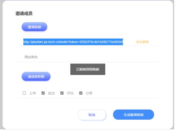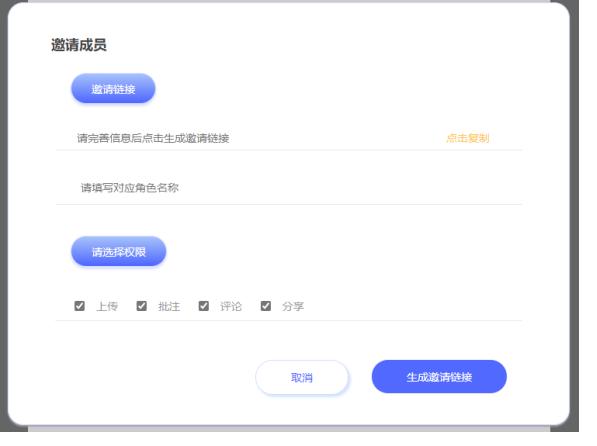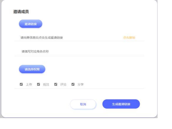 我们点击邀请成员后可以打开邀请界面(我们可以先完善信息)