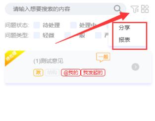 2、界面下侧所提的意见列表—左下饼状图为所提意见(轻微,一般,严重)的比例