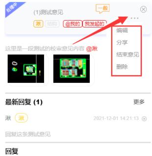 10、点击该项意见右侧的三个点可以对该条意见进行操作